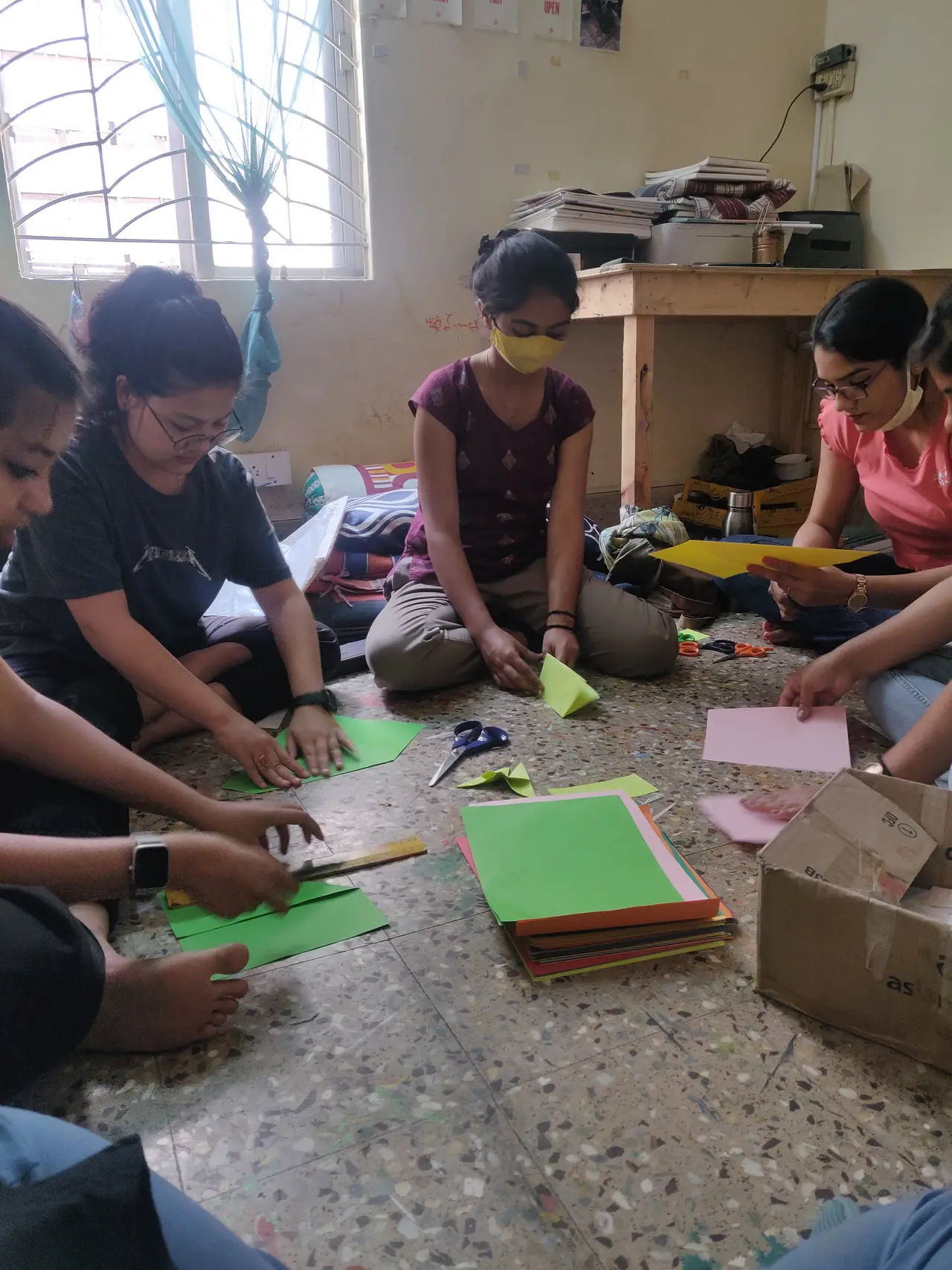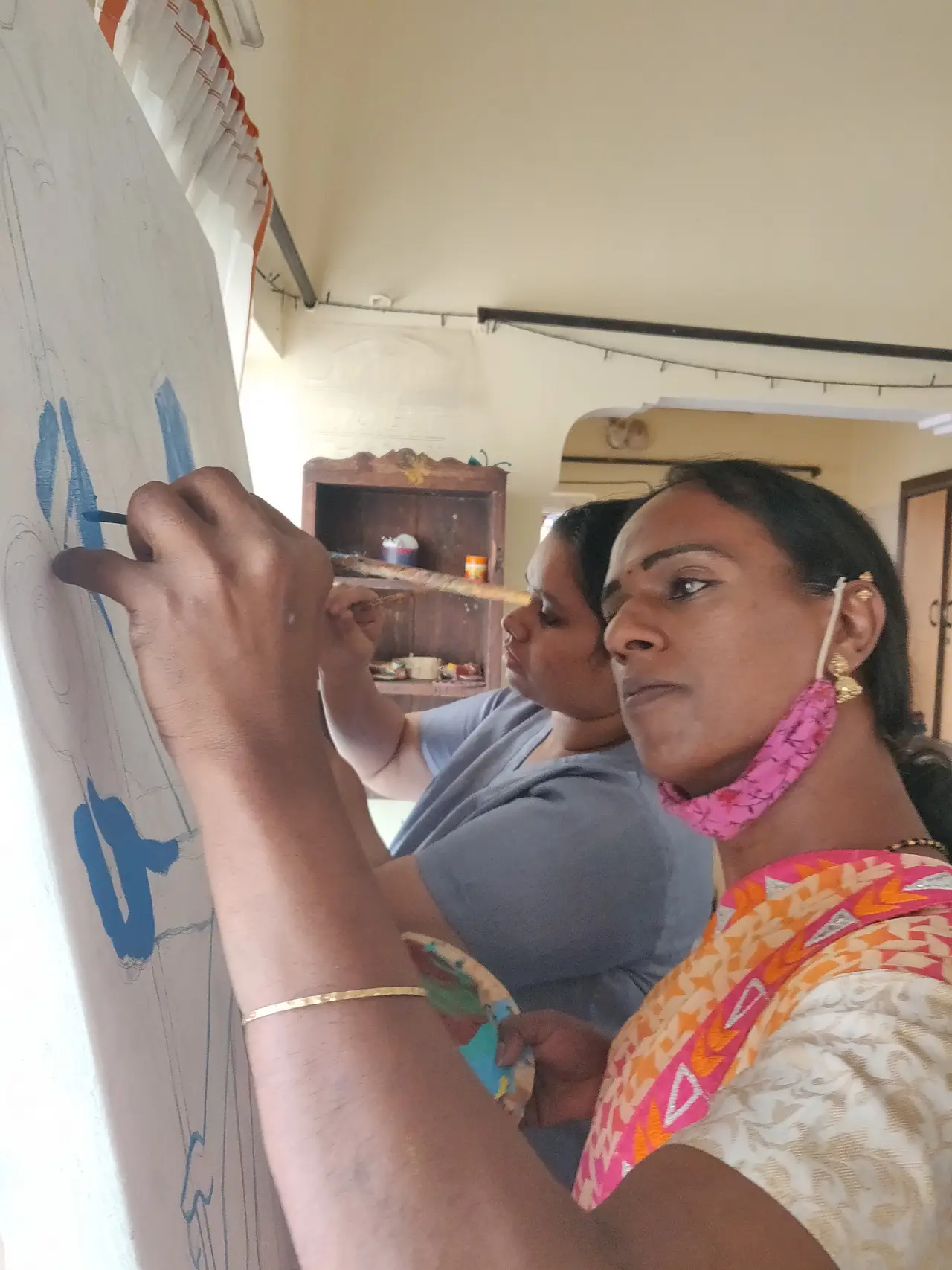 We asked her why and she replied saying that there are a series of projects coming up that are very different from what we are doing now and that it will be more of storytelling, listening, singing, acting and / or the other art forms, apart from the murals we do. These projects would be assigned to us and conducted by us. I was in shock. I had forgotten that we hold so many stories and hidden artists, without an opportunity to express or channelise in the right way.