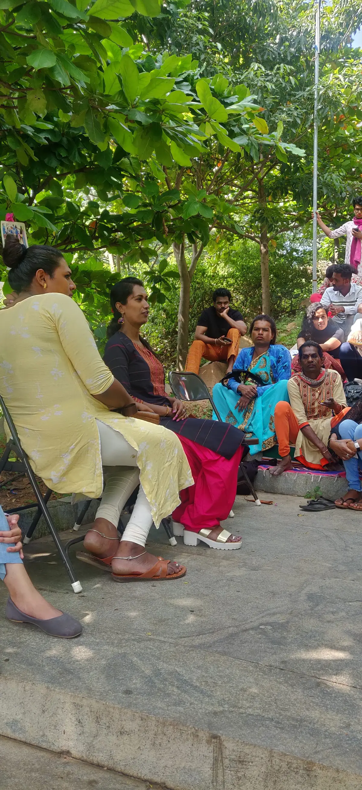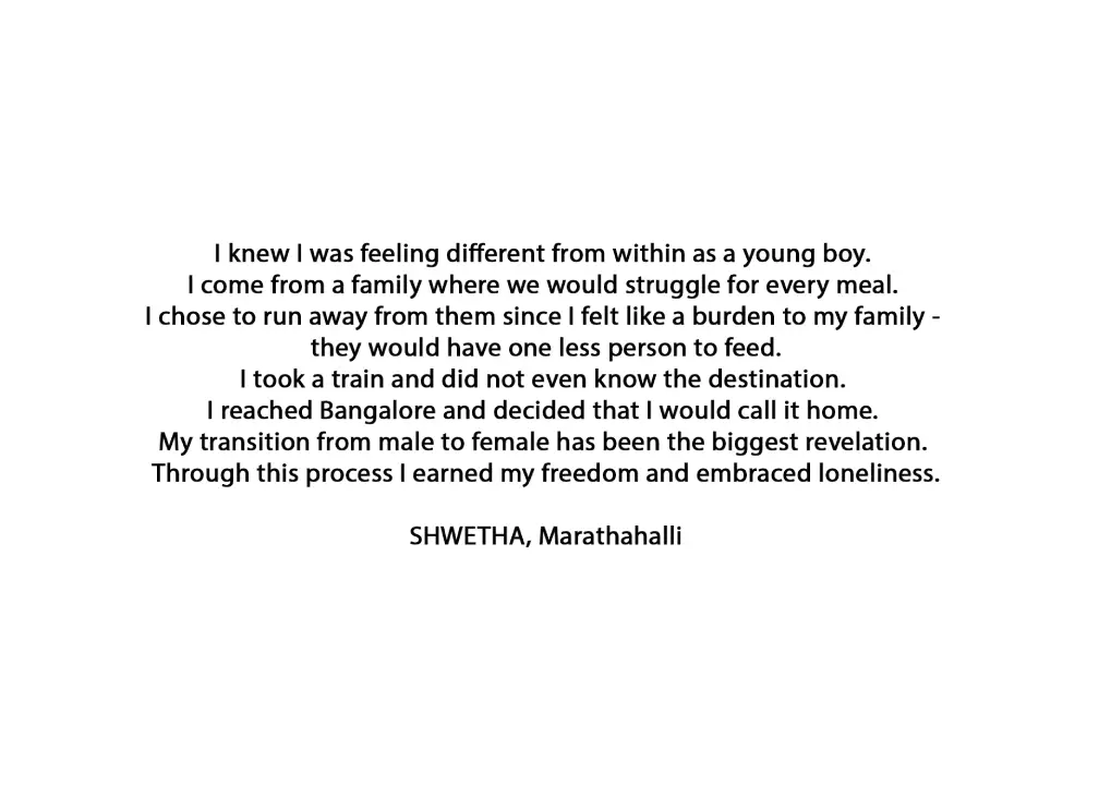 This documentation is a glimpse of the 9 events that took place in Bangalore, exploring spaces and stories that belong to the people from the Transgender community. Each project was only possible because of the generosity and the knowledge that was shared by Shanthi, Chandri, Purushi, Jyothi, Priyanka, Mayil, Booby, Kumari, Shwetha, Prarthana, Veena, Sandhiya, Thara, (Late) Parichaya, Aishwarya, Nakshatra, Sana Suman, Harish, and so many more from the community.